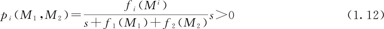 虽然(1.7)式并不符合(1.1)式所规定的一般形式,但在竞赛理论中也有一定的应用,如柏克(Baik,1998)、车和盖尔(Che and Gale,2000),什卡佩尔达斯和韦德亚(Skaperdas and Vaidya,2010)以及考库和达赫姆(Corchon and Dahm,2010)的研究。