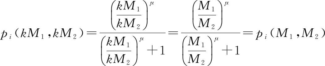 (1.8)式所示的冲突成功函数与比率形式的冲突成功函数还有一个不同之处,即(1.8)式是非齐次函数。