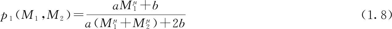 ,其中0<μ≤1,μ∈(0,1],那么参与者1获胜的概率可相应地表示为