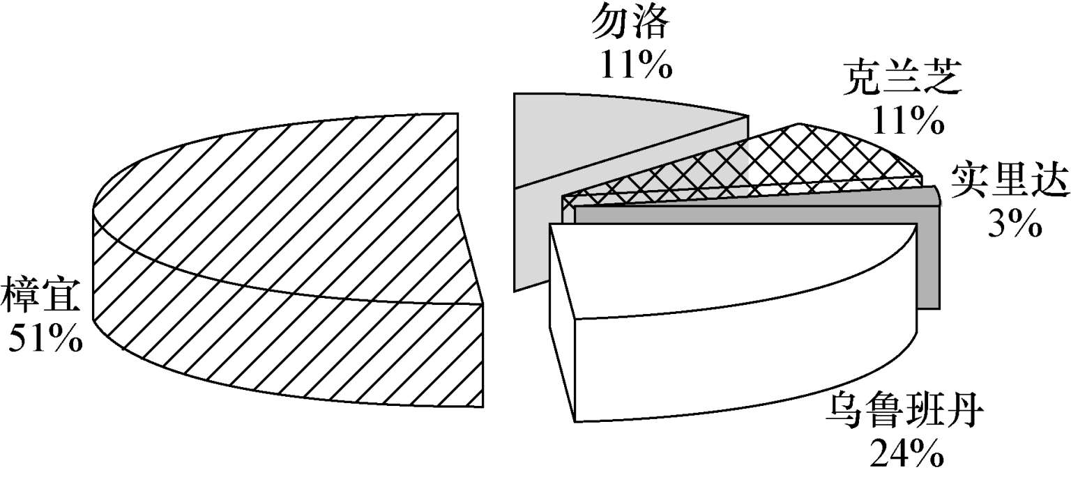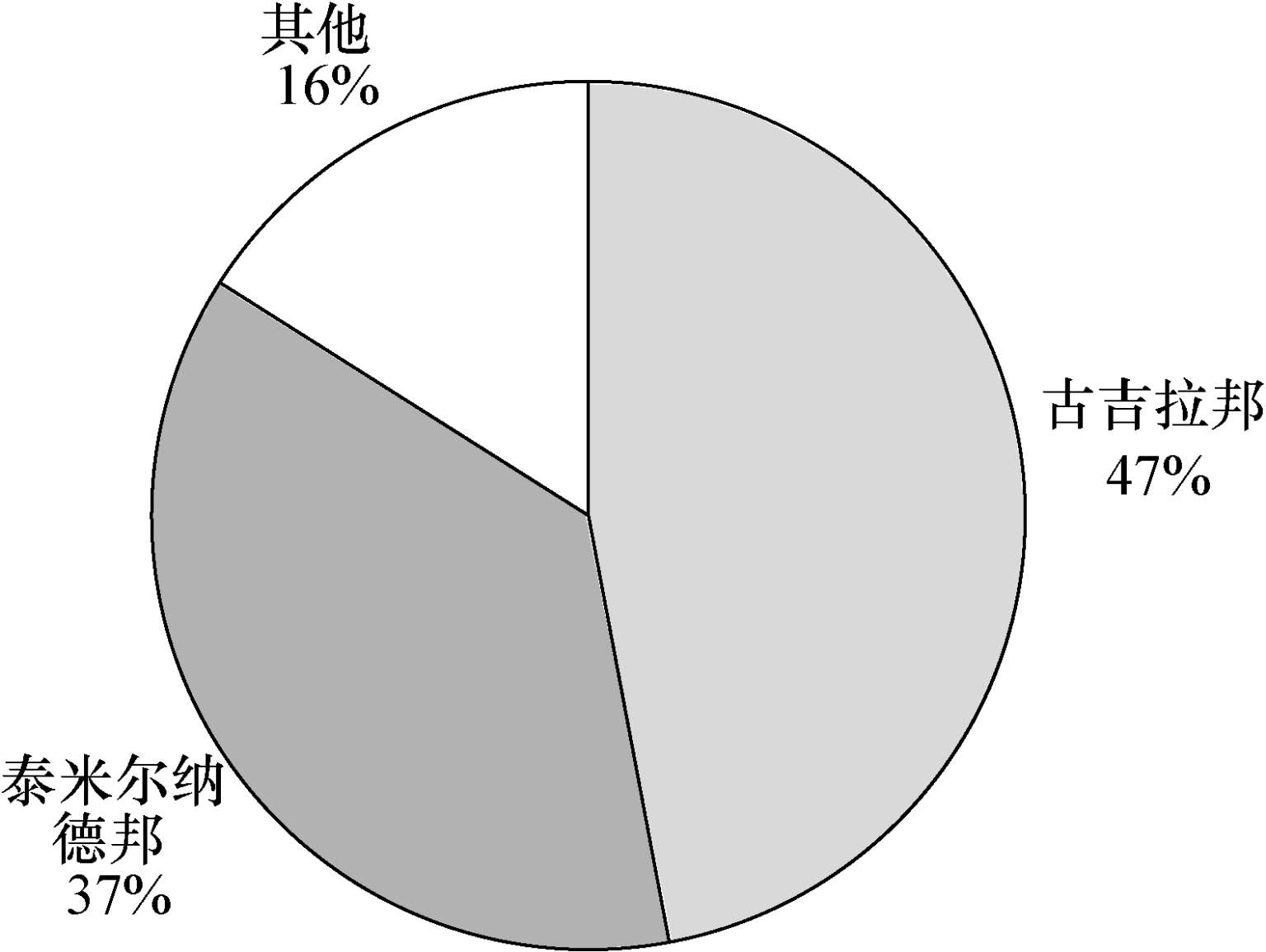 图1—20 印度海水淡化工程的地区分布(以处理能力计)