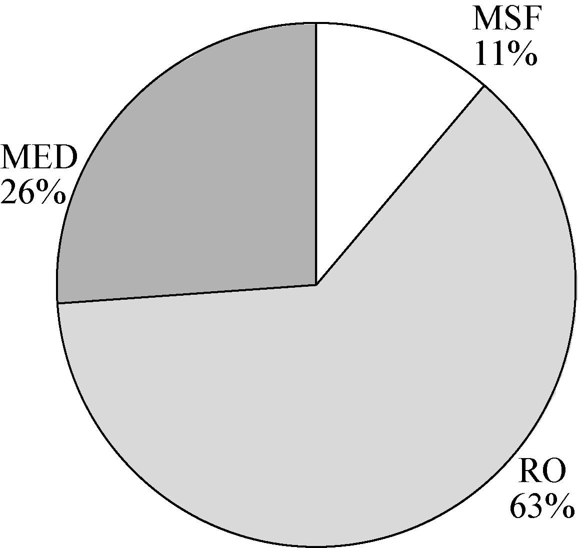 截至2009年,印度大约有1 000个海水淡化厂,总生产能力约为291 820m 3 /d。现阶段,印度大多数海水淡化厂使用的都是反渗透膜技术。低温多效蒸馏(MED)技术主要被用在印度的大型海水淡化厂。图1—18和图1—19列出了反渗透、多级闪蒸(MSF)以及低温多效蒸馏(MED)在印度海水淡化市场中的份额。图1—20列出了印度海水淡化工程的地区分布。