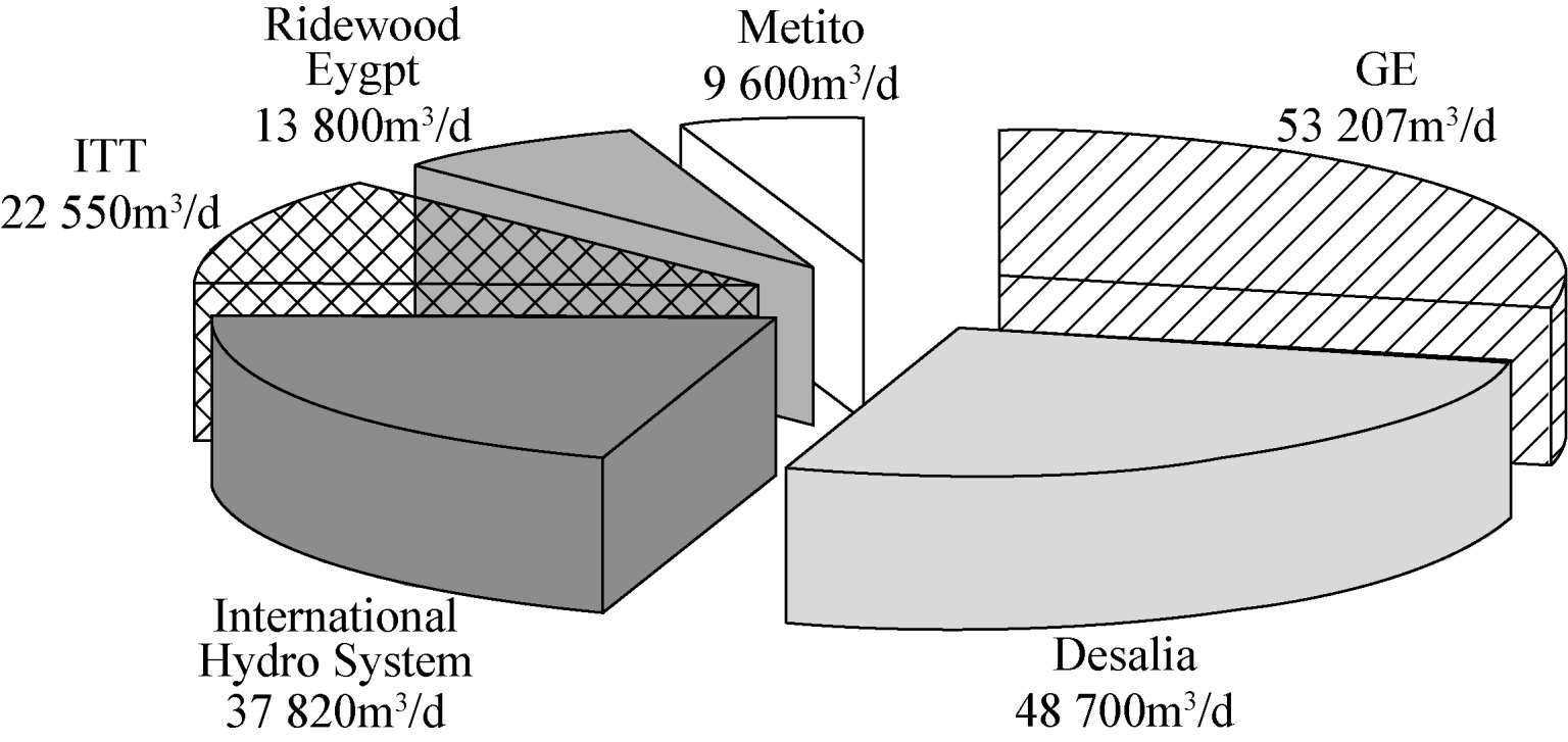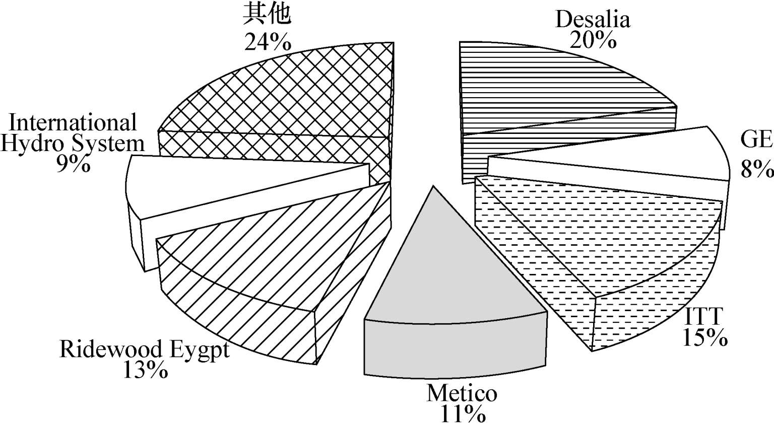 图1—36 各公司在埃及的海水淡化工程数量比例