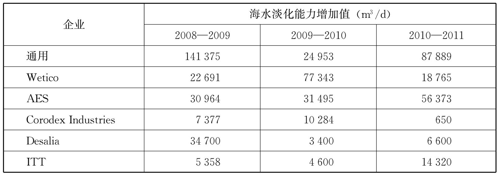 表1—5各公司在中东地区的海水淡化能力的增长情况(2008—2011年)