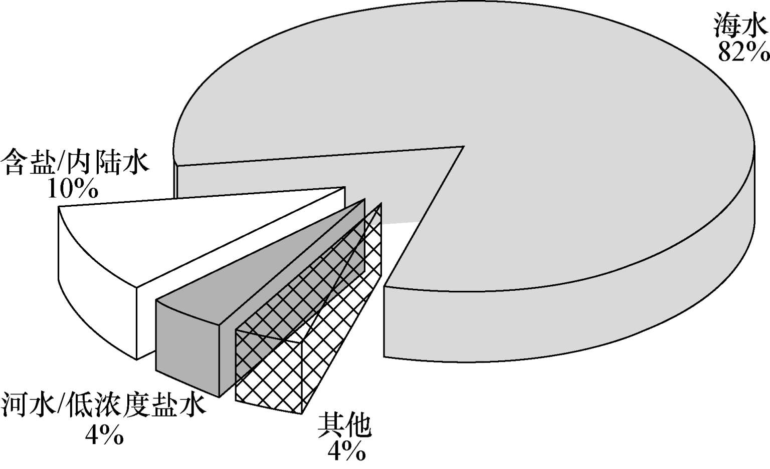 图1—30 中东地区淡化工程原水的构成(2008—2011年)