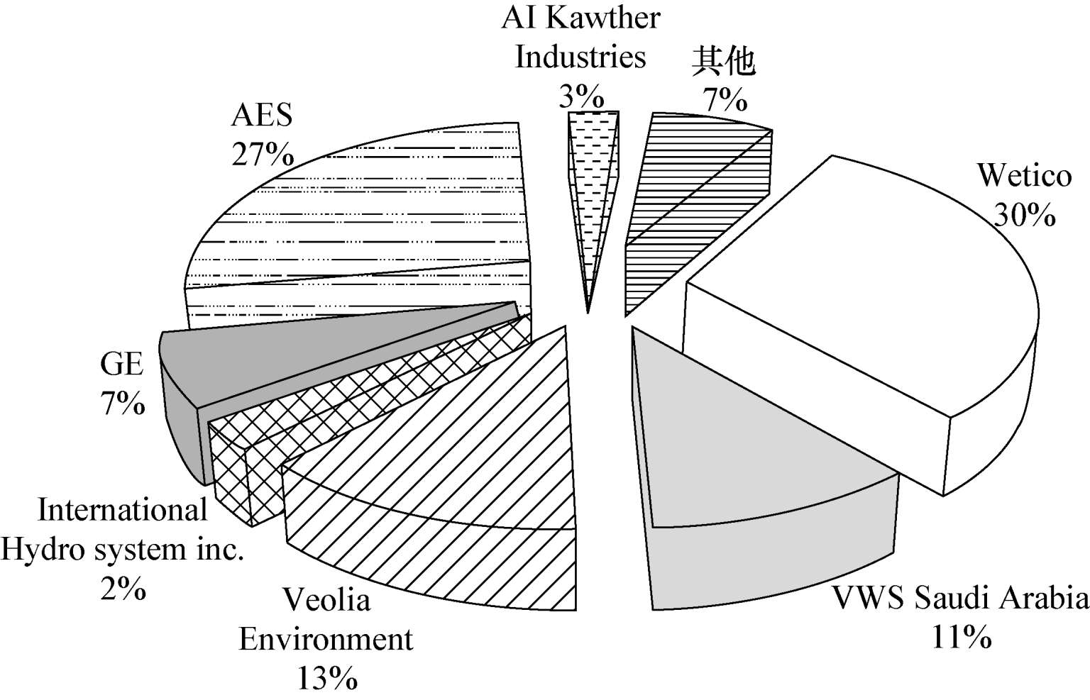 随着海水淡化事业的不断发展,其他企业也将不断进驻中东市场,从近三年的市场情况来看,通用、Wetico、AES三家公司所签约和建造的工程数量及其海水淡化能力都处在行业内的前列,依然占据着较大的市场。但海湾地区也有一些本土企业从事海水淡化工程,如VWS Saudi Arabia,同时,海湾国家也在不断进行技术创新与改革,使其市场占有率不断提高,这为海湾地区在未来的水源供应提供了有力的保障。