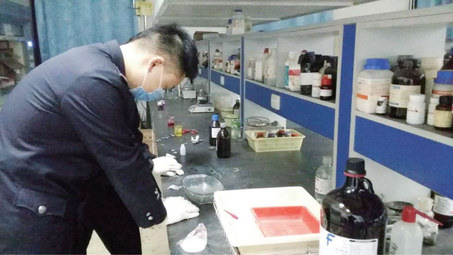 ■ 戴上手套收集现场证据