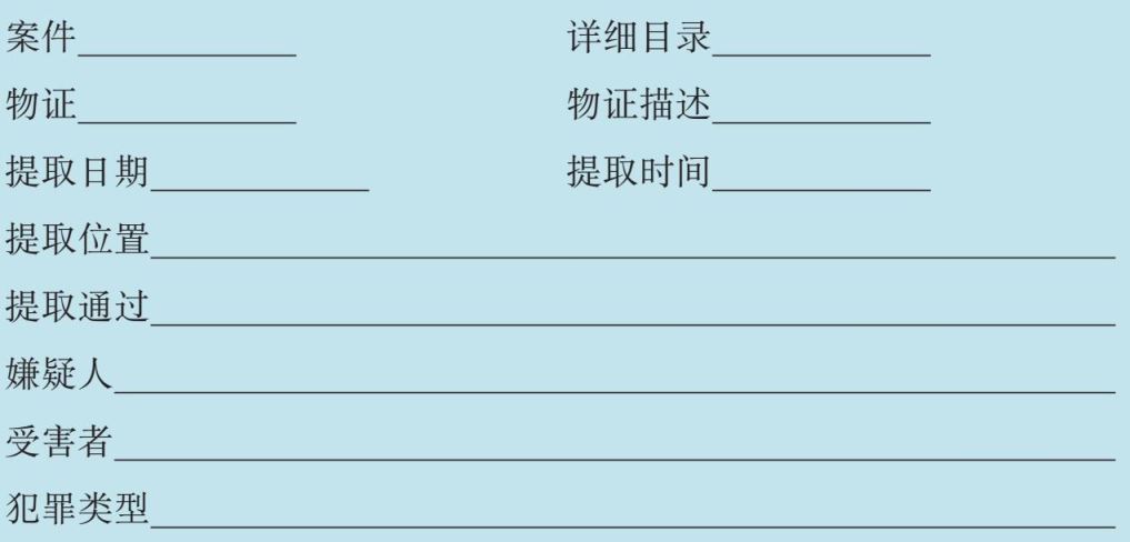 ■ 记录日期、时间、位置和证据收集人员姓名,并对每张证据表进行汇总,得到一张证据汇总表