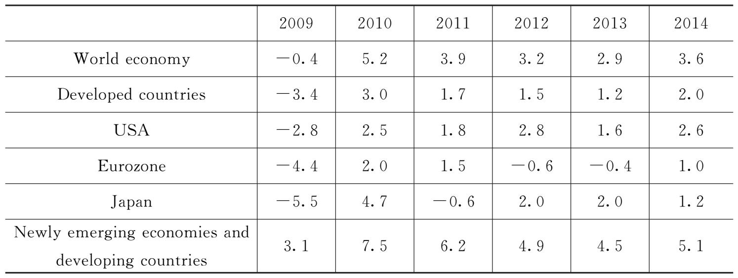 In 2014,the IMF forecast that the global economy growth would increase to 3.6%,or 0.7%higher than 2013.This growth rate was labeled as“a relatively low mid-term growth trail"(see Table 2.2 and Table 2.3).