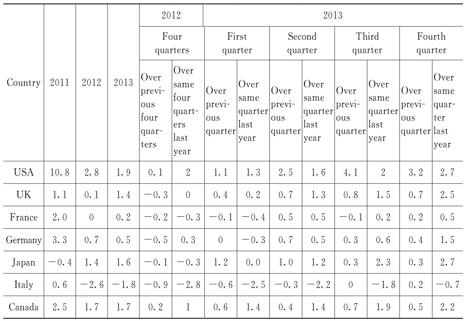 Note:Apart from the US and Japan,the data for the fourth quarter of 2013 and the annual data for 2013 are from forecasts made by Consensus Forecasts in December 2013 and January 2014.