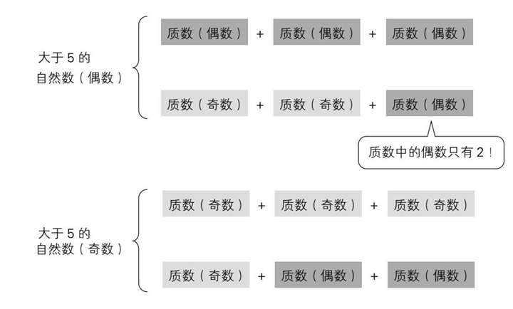 3个质数组合在一起时,得到的和有奇数和偶数两种组合方式。