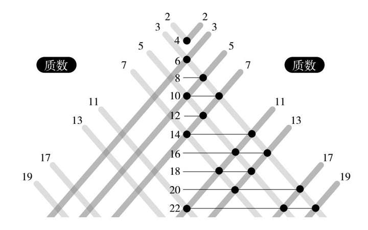 18、20、22也可以用两个质数的和来表示。那么这条“大于2的偶数=质数+质数”的规则是否会一直延续下去呢?