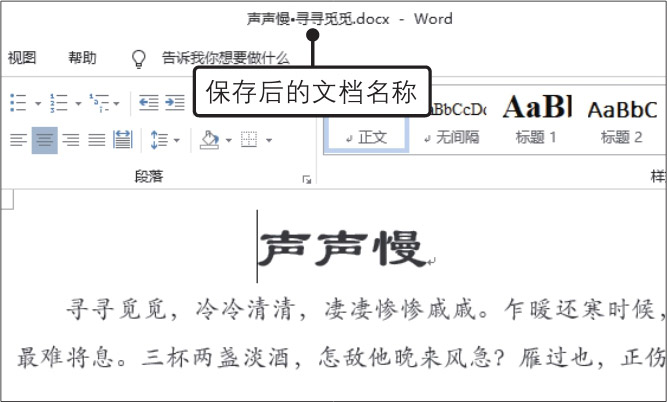 最终文件: 下载资源\实例文件\第1章\最终文件\声声慢·寻寻觅觅.docx
