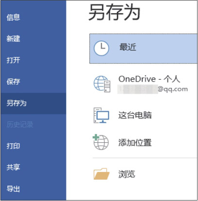 Office 2019提供了“另存为”命令,利用该命令同样可以实现文档的保存。如果当前编辑的文档已经保存在计算机中并且需要创建副本,就可以利用“另存为”命令来实现。