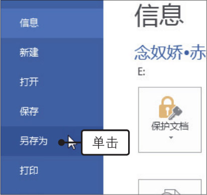 步骤02 单击“另存为”命令。 在弹出的“文件”菜单中单击“另存为”命令,如图1-54所示。