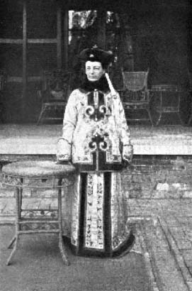 随结束长期侨居欧洲的生活返回祖国。经过反复讨价还价,这两位在欧洲宫廷中开了眼界的女士被破例允许身穿巴黎女性最时尚的服装觐见太后。不仅如此,她们觐见太后时还不用按中国传统礼节磕头,而是代之以西方宫廷礼节。我有幸参加了这次觐见,还亲眼看见慈禧太后饶有兴致地伸着脚,把自己那双清廷花盆底高跟鞋跟两位年轻女士的最新款路易十四式高跟鞋