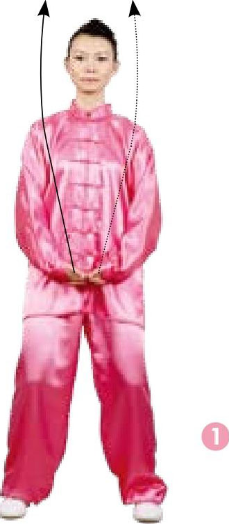 1 接预备式,两手五指交叉于小腹前,掌心向上;目视前方。