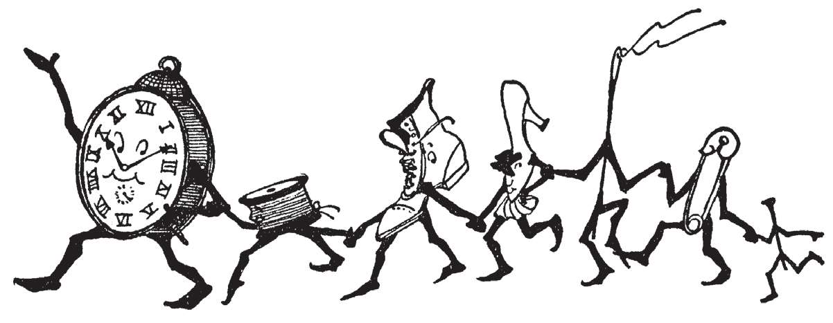 And clocks and watches—they make millions of them too, though one clock or one watch should last a person a lifetime—little watches for the wrist and little clocks for mantelpieces and big clocks for clock towers.
