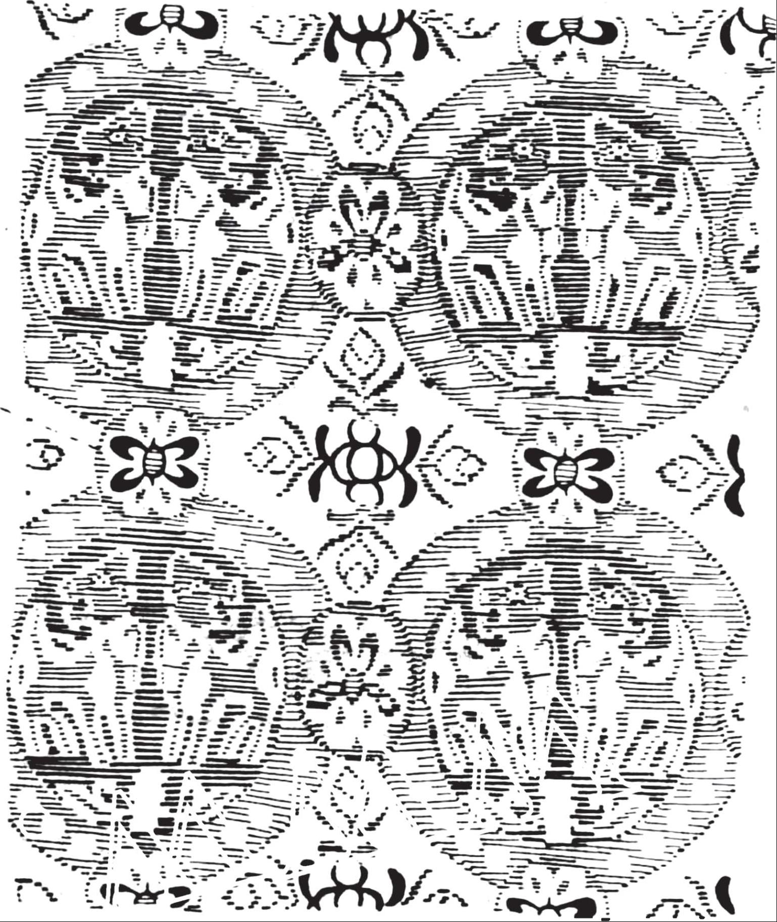 这里主要是指方形或菱形的骨架排列形式。这种图案不多见。