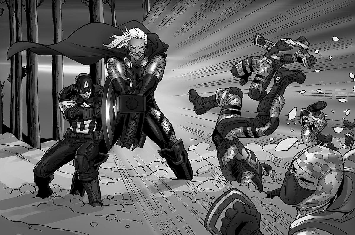 Captain America heard him and turned to Thor, who was finishing off the closest defending soldiers. “The Enhanced?” Thor asked.