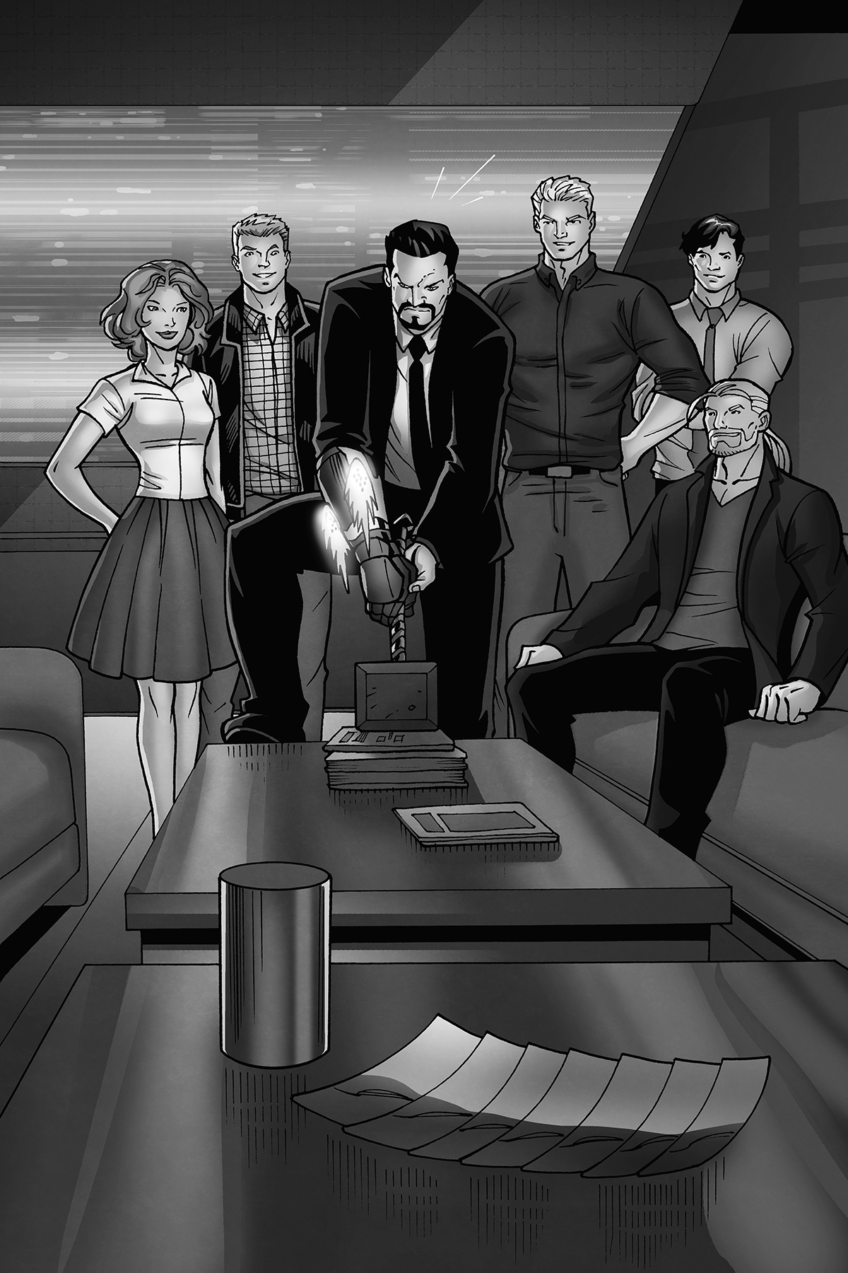 Later, the only people left were the Avengers, and the party was winding down. They were all sitting around Thor’s hammer, Mjolnir, which rested on a coffee table. “But it’s a trick,” Clint was saying. He was all healed thanks to Dr. Cho’s tissue-regeneration procedure.