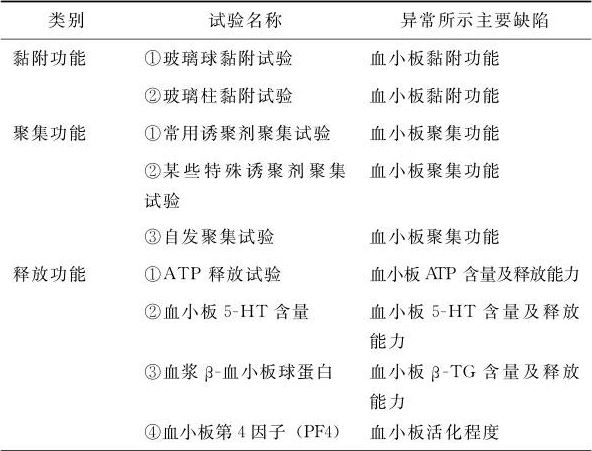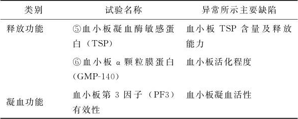 表1-5 诊断血小板功能异常的实验价值