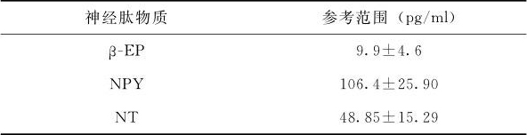 表1-6 几种神经肽物质参考范围