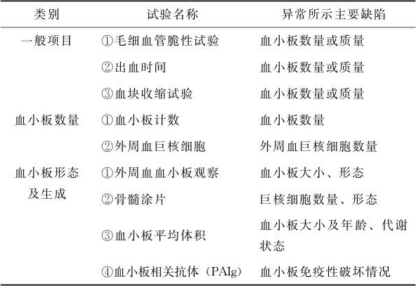 (2)检测方法:自动血液细胞分析法、显微镜观察、束臂压迫法、计时法。