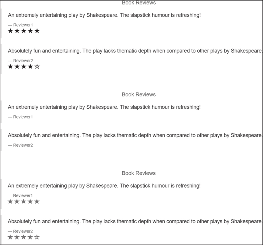 7)使用浏览器访问。使用浏览器访问 http://11.11.11.111:31380/productpage ,多次刷新将可以看到如图5-1所示的不同的评价界面。