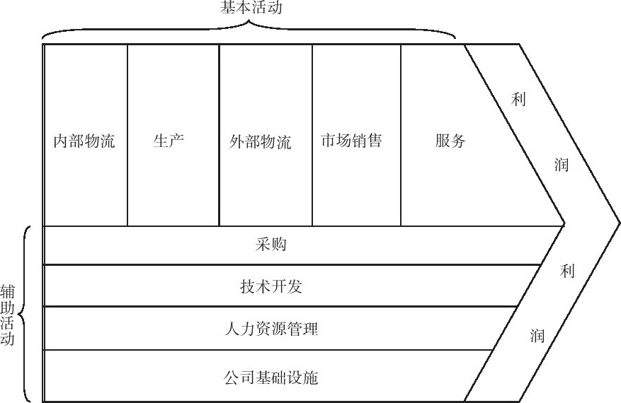 美国管理学教授迈克尔·波特提出的价值链理论认为企业内部的所有活动可以分为两大类:基本活动(价值创造活动)与辅助活动(支持价值创造活动),如图1-3所示。