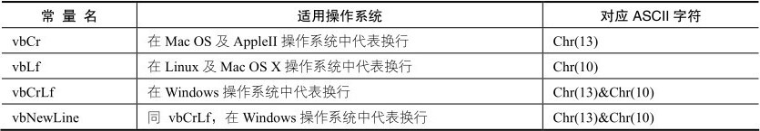 表5-1 各种操作系统中代表换行符的VBA系统常量