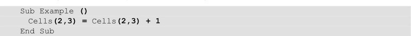 读者可以将这段代码输入VBE中,并运行这个程序(注意:在单击“运行”按钮前,先用鼠标单击Example内的任意位置),以观察C2单元格的变化——每运行一次Example,C2单元格的数字就会自动增加1。