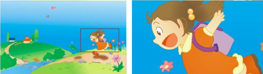 由于矢量图形由点和线组成,因此,矢量图形的大小与分辨率无关,无论将矢量图形放大多少倍,都不会失真,如图1-9所示,可以按任意分辨率打印,并且矢量图形文件所含有的数据量小,因此所占的空间也小,计算机运行的速度则会相对提高。但是矢量图形不易制作出色彩丰富的图像。