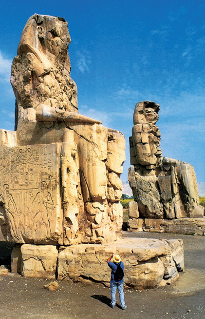 自公元前24世纪的古王国第五王朝开始修建神庙,到公元前14世纪~前13世纪的新王国第十九王朝神庙建设达到鼎盛期,古埃及神庙的型制已基本固定下来,如阿蒙霍特普三世陵庙(图1-046)、拉美西姆陵庙、拉美西斯三世陵庙等等。其共同特点是:总体有高大围墙封闭;有明确的中轴线;以塔门为先导,庭院与柱厅相间,空间逐步收缩,直至圣堂;充分利用墙面、柱体和梁架,满刻浮雕,并以紧挨建筑的圆雕和方尖碑穿插整个序列。这种定型化的模式一直延续到古埃及晚期,长达两千年。到公元前4世纪以后的托勒密时代的一些神庙,虽然浮雕内容时有生活化的反映,如饲养家畜、妇女分娩、医用手术工具等等,但艺术表现上再也看不到两千多年前卜塔豪特墓中浮雕那样的新鲜活泼了。也没有了巨型圆雕和方尖碑。神庙格局仍然僵化地固守着老传统。而此时,地中海周边已经是希腊化的世界。雅典卫城、德尔菲圣地等明快的开放式布局已经灿烂地出现了。