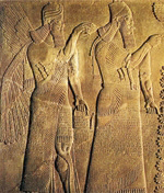很有意思的一点是,这些浮雕所装饰的宫殿,从入口处的大门往里走,将会穿过一连串越来越小的庭院,空间小了而四周装饰物的尺寸并不缩小。人们感受到压抑,在精神上受到国王威权越来越大的震慑。有理由相信,这种空间处理手法和浮雕的艺术处理受到过古埃及的重大影响,因为当时埃及和亚述是通过巴勒斯坦—叙利亚相联系的。