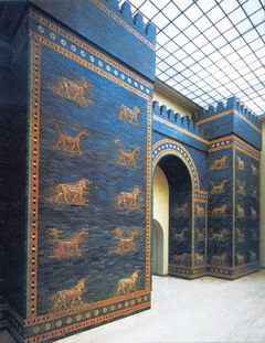 其三,由蓝色琉璃砖贴面、浮雕装饰的伊斯塔门和典礼大道的杰出艺术效果,在历史上是独树一帜的;然而这不是无缘无故突然出现的。巴比伦,乃至两河流域,由于缺乏大量建筑用石材,不得不使用泥砖或烧制砖。为了保护墙体而发明的琉璃釉正好形成了独特的装饰风格。而后,琉璃传入中国和阿拉伯世界,得到了广泛的发展和应用。