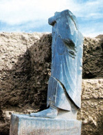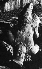 有着文治武功的萨珊王朝第二任君主沙普尔一世,有一尊高达8米的石灰岩雕像,被发现在首都比沙普尔附近的一个洞穴中,但已倒塌(图2-061)。这里可能是他的埋葬地。在波斯历史上,一尊独立布置的君王的巨大圆雕像,是绝无仅有的。