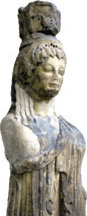 希腊本土圣地德尔菲的希夫诺斯珍宝库是一座小型建筑,约建于公元前530年(图3-012)。它的檐壁浮雕《神与巨人之战》是公元前6世纪的优秀作品,在构图的疏密节奏、人物动态的把握上都显得自信(图3-013)。它的开创意义在于,加上了一个正面的有双圆柱的门廊,而且两根圆柱刻成了女郎的形象(图3-014)。这座爱奥尼式的建筑就成了最早独创出人像柱的范例。以优雅恬静的雕像代替建筑形态的石柱,既满足了承重的功能需求,又予人以美妙的形象感受,无疑是艺术家的奇思妙想,给庄重的建筑立面增加了生活情趣和活泼的气氛。它为一百年后雅典卫城上伊瑞克先翁神庙的女像柱提供了样本,也开启了欧洲两千多年各种人像柱的历史。(不过,这两尊雕像的动态显得过于自然活泼,与承重构件所需的建筑感有所相悖。)