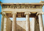 伊瑞克先翁神庙的檐壁上也有浮雕带。由于是在黑色石材的背景作的白大理石浮雕,所以轮廓也是十分鲜明的。