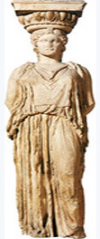 伊瑞克先翁神庙初建于公元前6世纪,曾是陶立安式与爱奥尼式的混合柱式,公元前420年由穆内斯科雷斯设计重建。由于地基有明显的高差,要保留传说中海神波塞冬与雅典娜争斗时,他的三叉戟所留下的神圣印痕,以及雅典娜使之开花的橄榄树,所以神庙被设计成一个复杂的形状。内部靠西边的供奉雅典娜的空间有两座门廊。南面的,即面对巴特农神庙的,则为著名的女像柱廊(图3-028、图3-029)。这座女像柱廊的设计是别具匠心的。虽然它是受到一百年前希夫诺斯宝库正立面女像柱的直接启发,但它仍可作为处理雕塑与环境关系的范例。因为,伊瑞克先翁神庙的南墙是实墙面,并无柱廊围绕,而作为在阳光下,游行队伍必经之路的重要景观,就远不如东西立面那么富于变化。一加上这座由6尊少女雕像组成的柱廊,神庙的南立面立刻生动起来。在地中海的和煦阳光照耀下,“少女”亭亭玉立,举重若轻,尺度宜人,成为极富人性的美丽景色,并与女性化的爱奥尼柱式的特点相符(图3-035)。即使单纯从雕塑技巧上讲,也比一百年前的希夫诺斯女像柱更显成熟、自然和优雅;她们似乎在守卫着一旁的神话中雅典国王可若比斯的古墓。