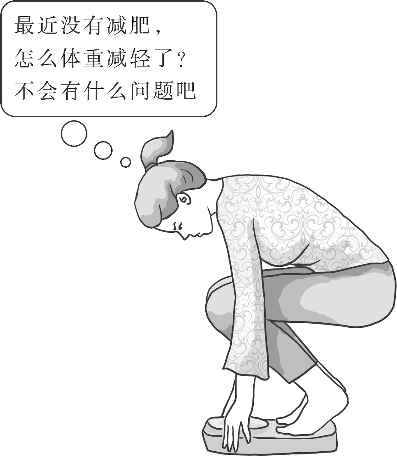 (2)食欲下降及消瘦:食欲会越来越差,即使自己平时很喜欢的食物也会变得不喜欢,尤其不喜欢吃肉类或者油腻的食物。患者因渐渐地吃得少,而消耗得多,会越来越瘦。