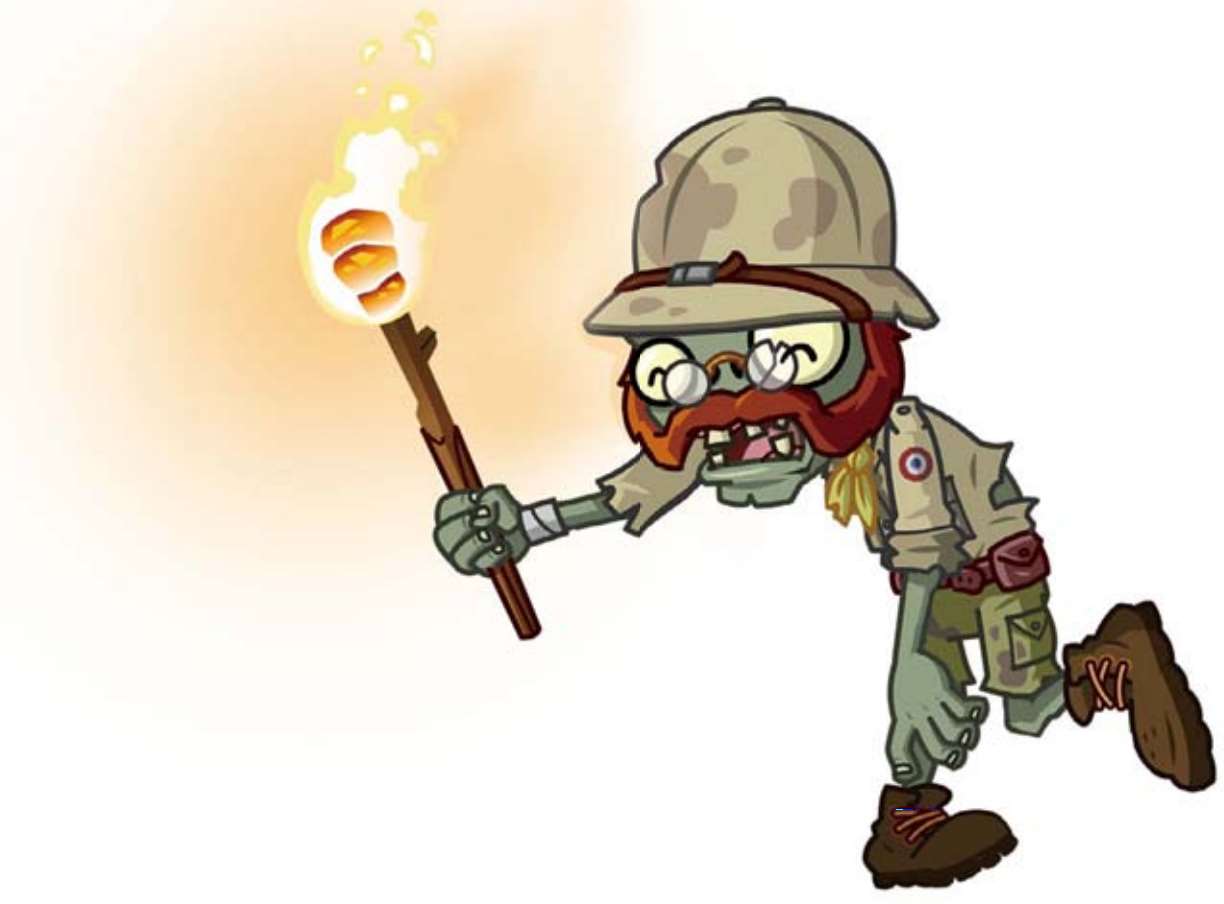 探险家僵尸的火把烧得更旺了。他把火把举得高高的,追逐着向日葵。但向日葵放射出强烈的阳光,僵尸的火把显得黯淡了许多。向日葵继续散发着阳光,把探险家僵尸照得身软头晕,火把越来越暗,火光就要熄灭了。