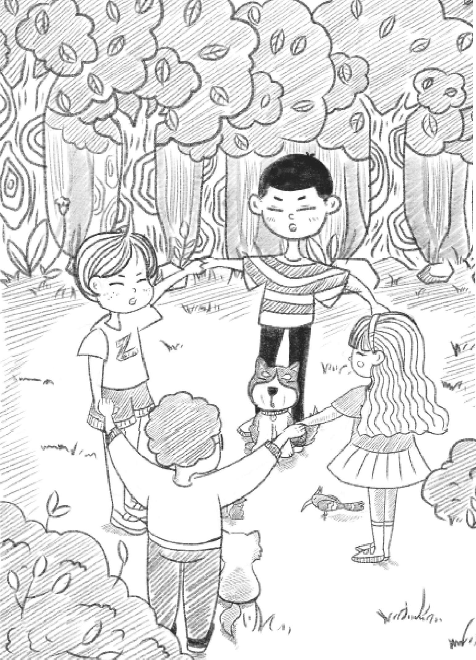 很快,四个小伙伴就在楼下的草地上会合了,他们坐在雪松下的草坪上,七嘴八舌地议论自己的苦恼——