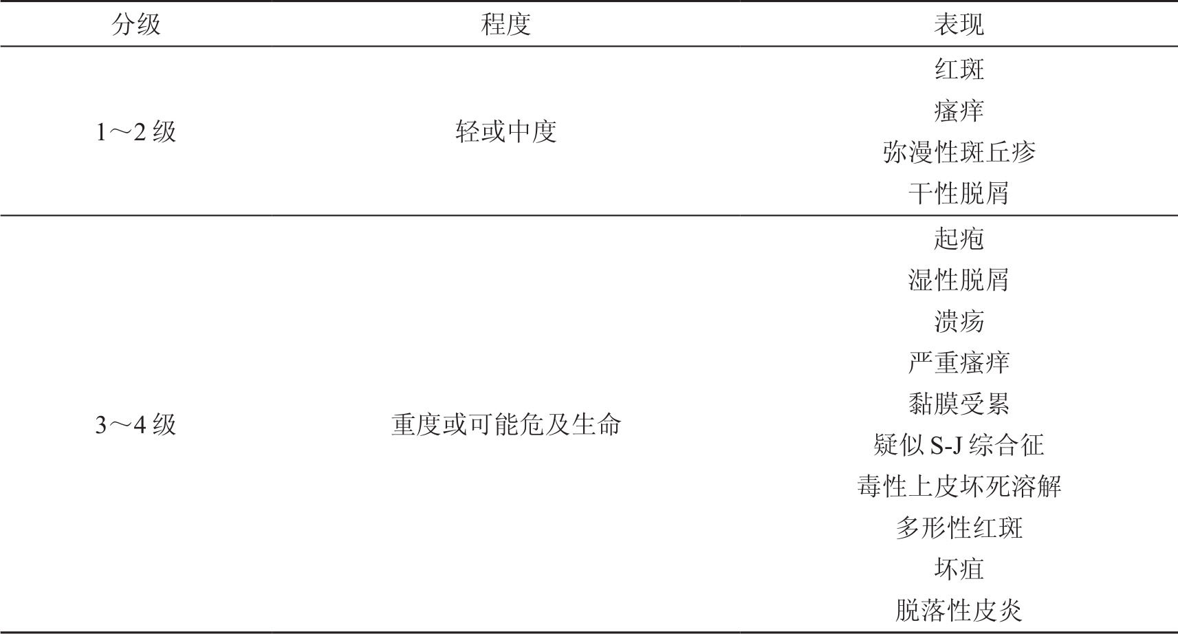 许多抗病毒药物可引起皮疹,以非核苷类药物最明显,尤其是奈韦拉平(NVP)。一般发生在开始治疗的第一个月。皮疹的分级见表3-3。