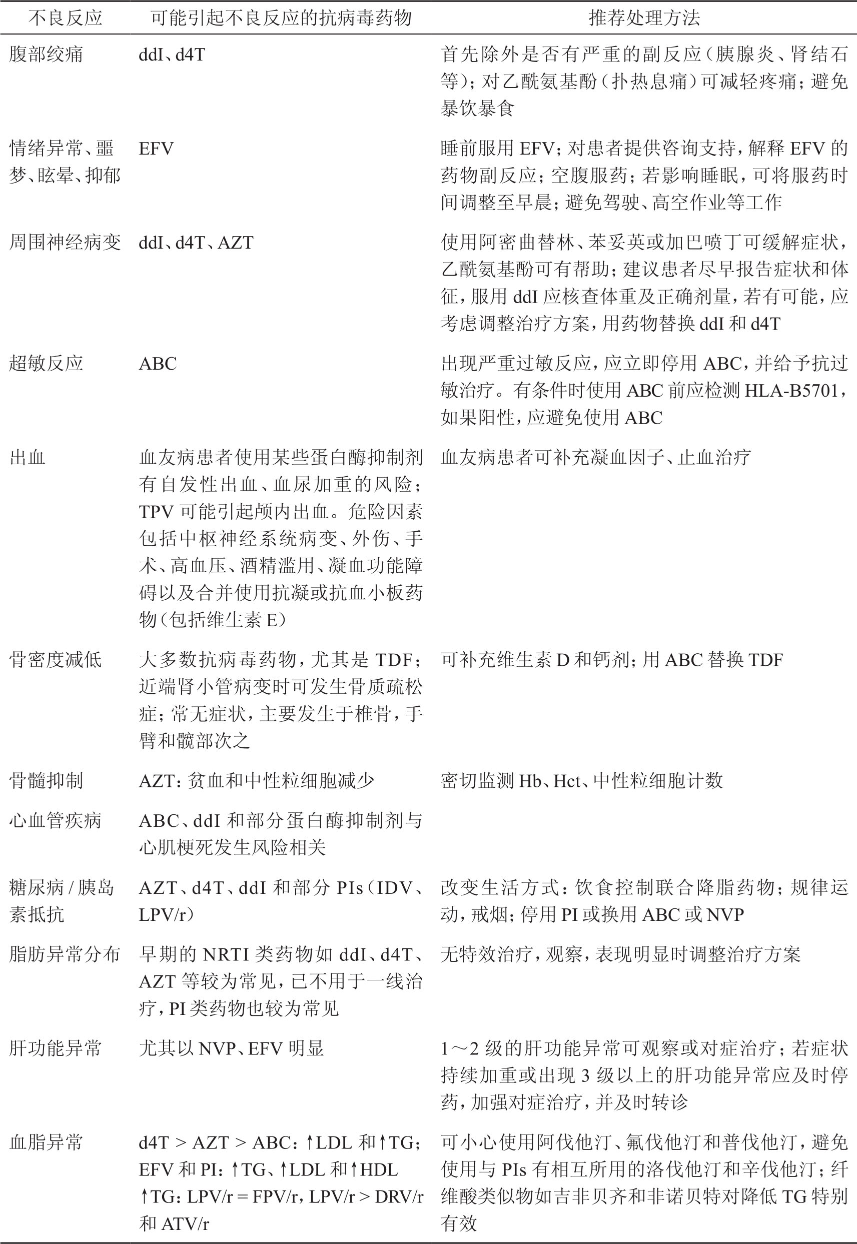 抗病毒药物的常见不良反应和推荐处理方法见下表3-5。