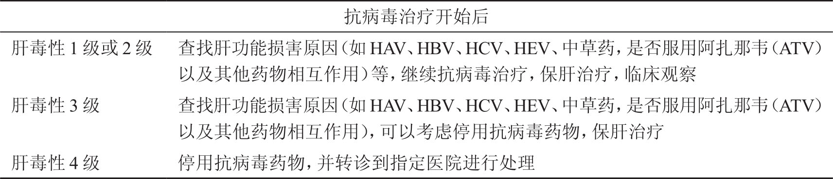 表3-4 抗病毒治疗后出现肝毒性的处理原则