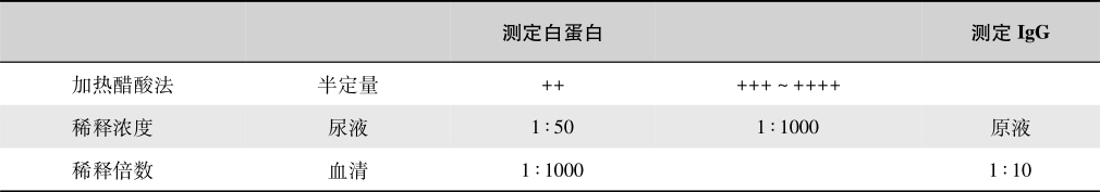有加热试验、醋酸纤维素膜蛋白电泳、免疫固定电泳及单向环状免疫扩散试验,具体操作见有关书籍。必须注意的是,做加热试验时,先除去共存蛋白;若受试者尿中含有多克隆游离轻链时,该试验可出现假阳性结果,应进一步验证。