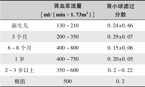 表5-8 小儿肾血浆流量、滤过分数正常值