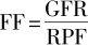 根据测得的肾小球滤过率(GFR)和肾血浆流量(RPF),求两者的比值可推算出肾小球滤过的部分即滤过分数(FF)。