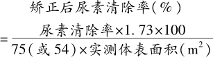 方法:试验日停进早餐。患者饮水1杯,30分钟后排尽尿弃之,记录时间。第一次排尿后l小时再排尿,收集、记录时间。采静脉血2ml,草酸钾抗凝。患儿再饮水一杯,1小时收集尿液,计量。分别测定尿量,血、尿中尿素氮浓度。根据测定值,求出清除率C值。临床上亦常根据实际体表面积加以矫正,以正常成人值为100%,求出百分率,作为表示的尿素清除率。即: