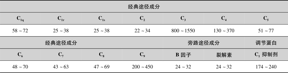 表5-13 正常人单个补体成分血浆参考浓度(mg/L)